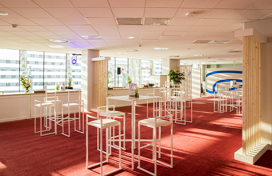 Parfaitement adapté aux événements de grande envergure, l’espace rencontre est un salon chaleureux et baigné de lumière. Il est approprié pour recevoir vos soirées business, réunions, conventions et conférences en configurations théâtre ou en demi-lune, mais aussi vos cocktails ou repas assis.