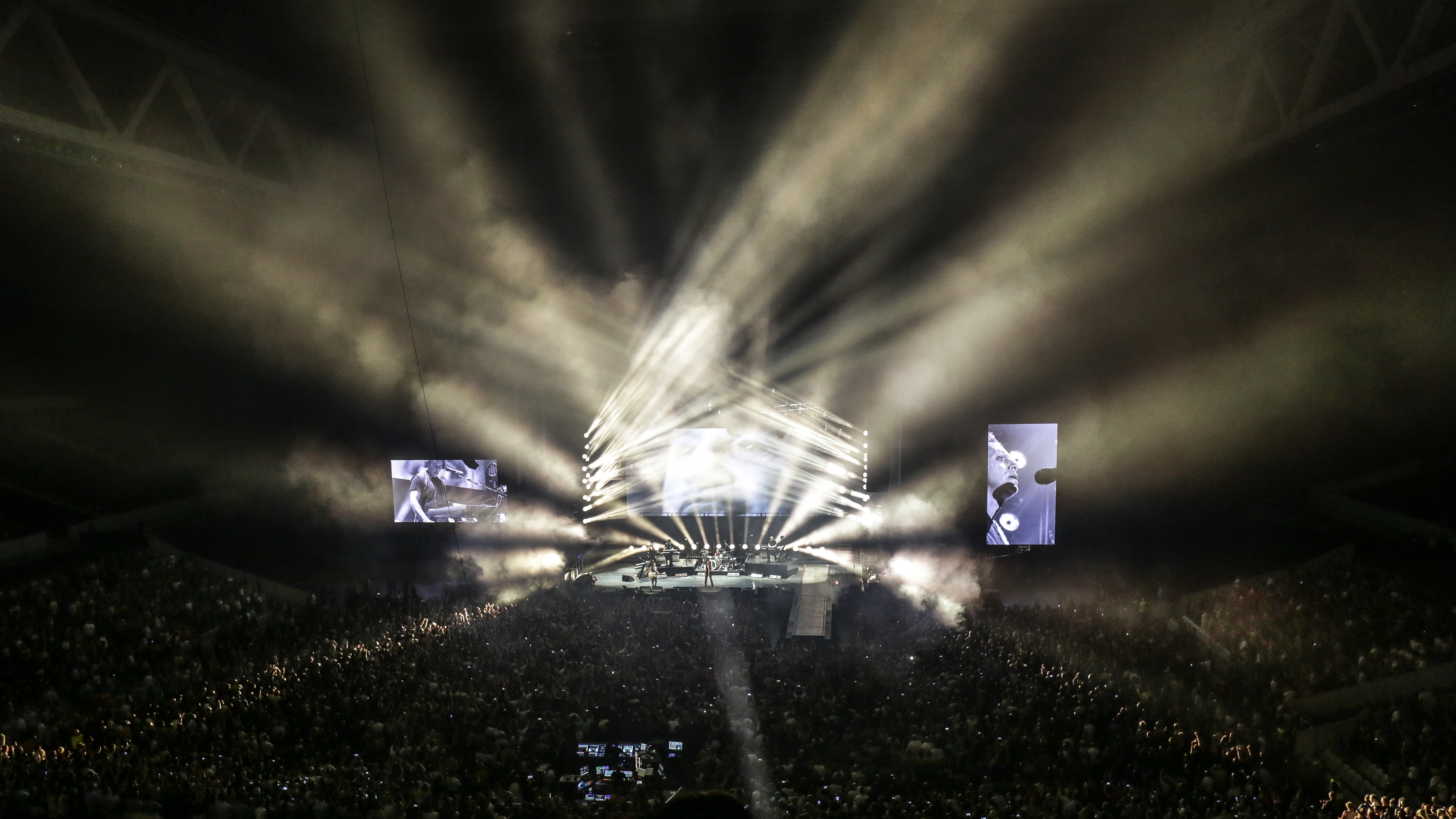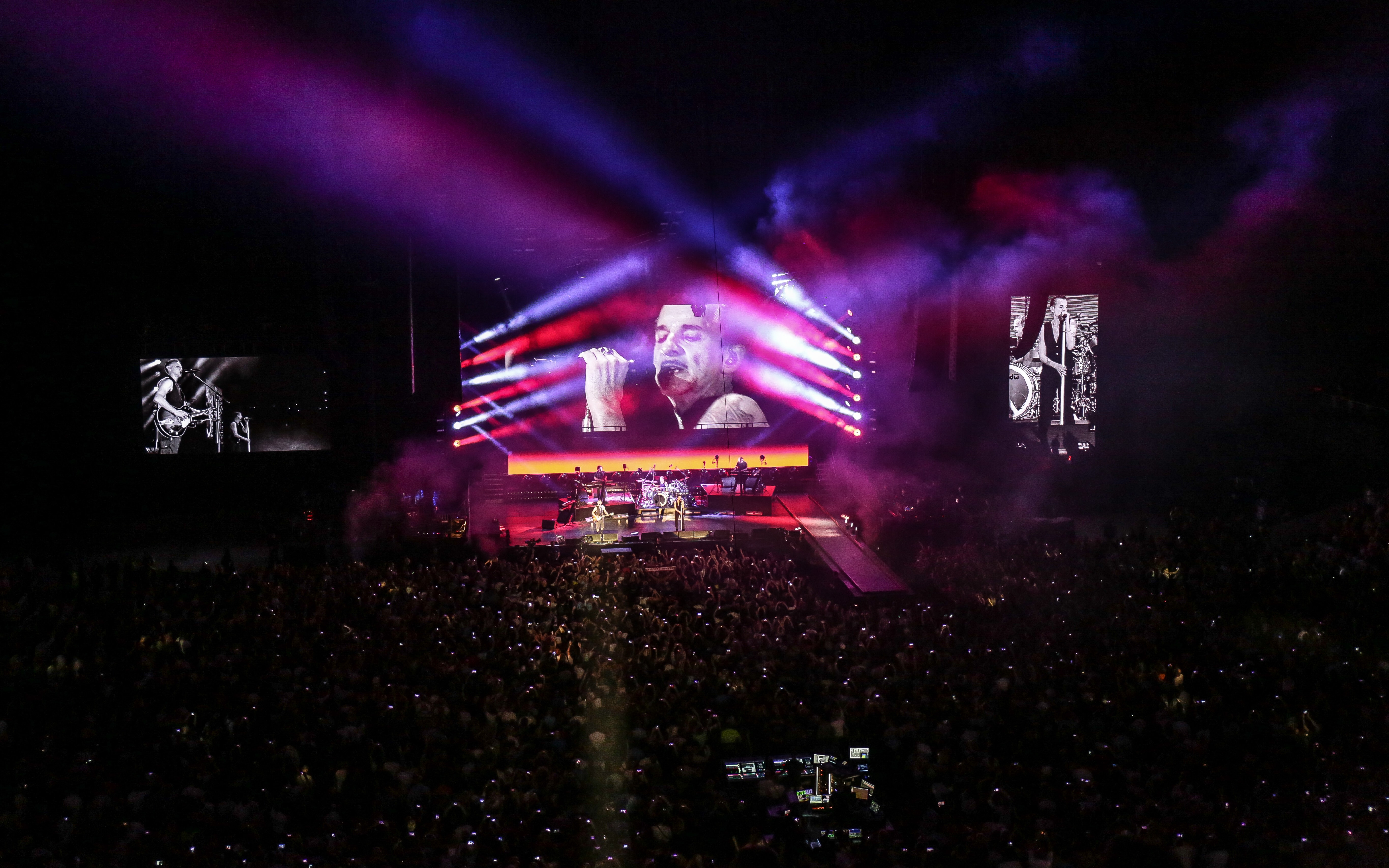 21h00 : Les lumières s’éteignent. Les notes de « Révolution » des Beatles retentissent dans l'Arena avec leurs titres rocks en hommage au groupe en référence au dernier tube « Where’s a revolution ». Tous les portables sont rivés sur la scène, attendant impatiemment l’entrée de Dave Gahan ! Le groupe arrive avec un « Good evening Lille ! » devant une salle comble et déjà survoltée. Martin Gore, Dave Gahan et Andy Fletcher enchainent ensuite leurs grands titres alternant répertoire récent (Going Backwards, So much love, Poison…) et incontournables (Enjoy the silence, Never let me down again, Stripped …) Le public, a ainsi pu retrouver le groupe qui les fait danser depuis les années 80 !