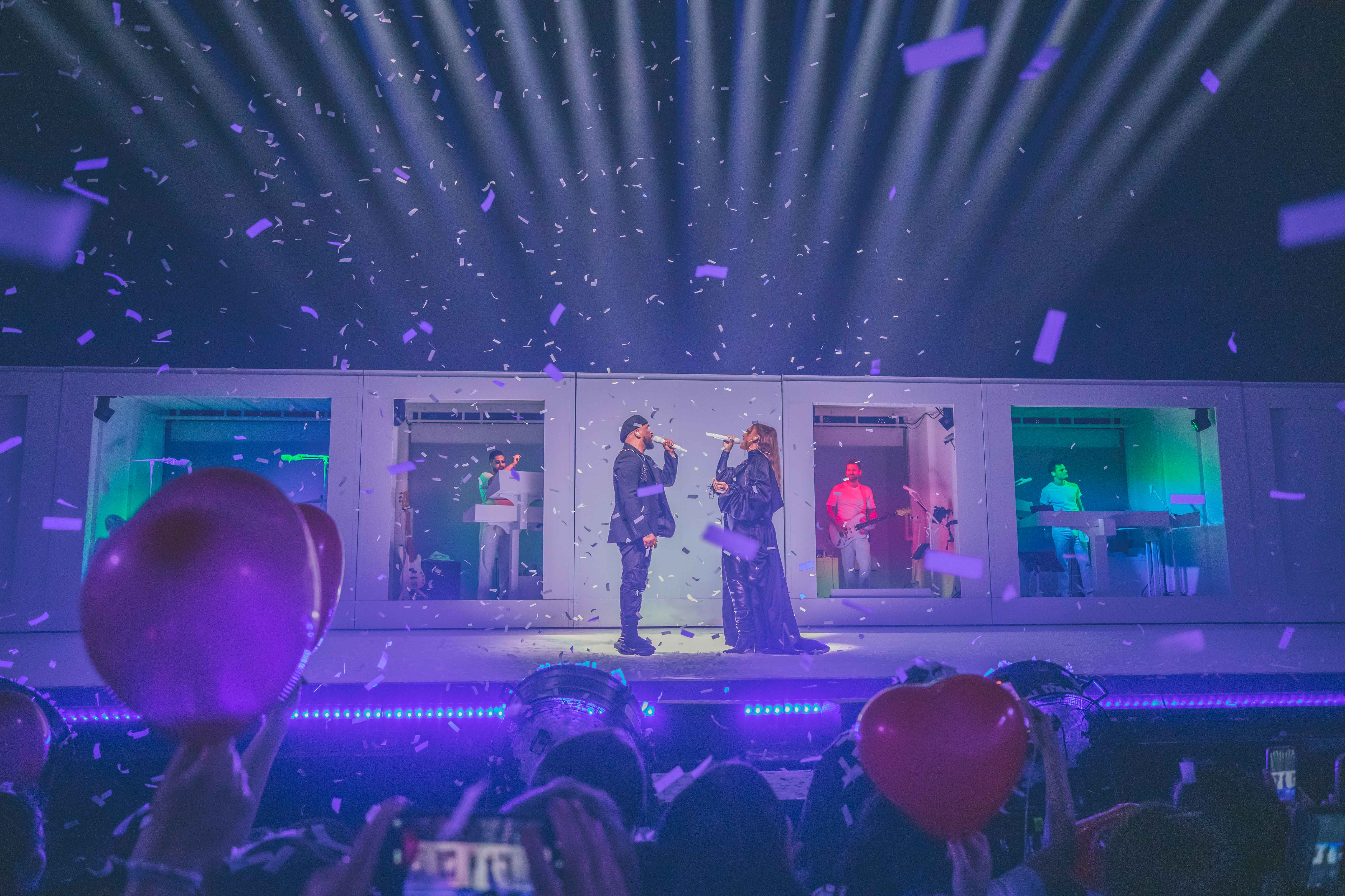 Après avoir remercié chaleureusement le public présent ce soir et depuis toutes ces années, c’est sous une pluie de confettis et un amas de ballons en forme de cœur que Vitaa et Slimane quittaient la scène, pleins d’émotions, en interprétant Avant toi.
