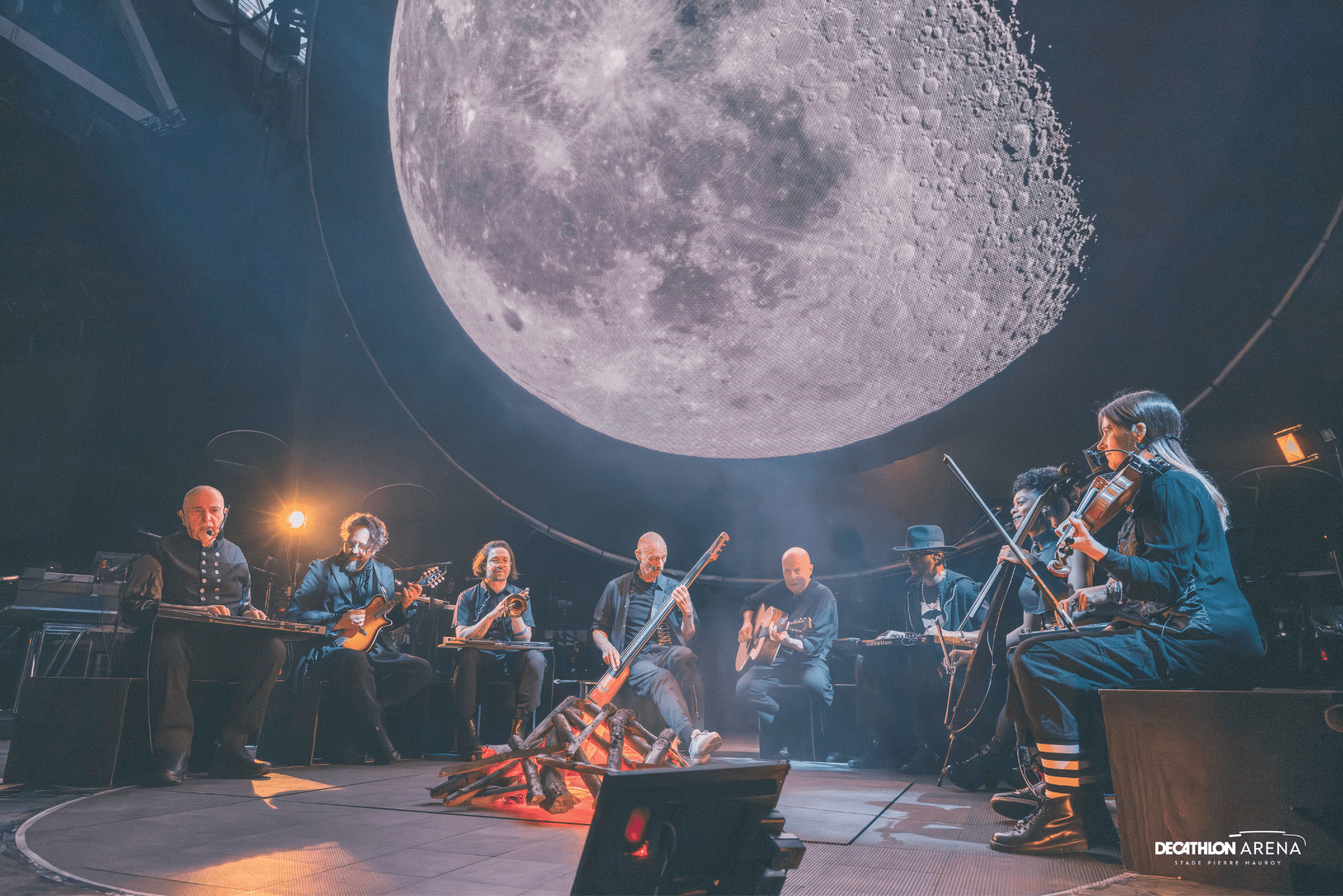 L’horloge géante se transforme ensuite en pleine lune... Un élément de scénographie qui ne passe pas inaperçu auprès des fans, qui pouvaient découvrir à chaque pleine lune un nouveau titre du nouvel album à venir de l’artiste britannique. Un feu de bois s’allume ensuite sur la scène, procurant une atmosphère chaleureuse et intimiste, et accompagnant les acoustiques et la voix intacte de Peter Gabriel le temps de deux morceaux : « Washing of the Water » et « Growing up ».